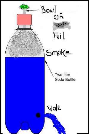 1. Remove the cap from the bottle. If you have a removable bowl from another bong you may attempt to drill a hole in the center of the cap and fit the bowl. If you?re lazy or just don?t have a removable bowl you?ll need the oh-so popular aluminum foil. Toss the cap and wrap a piece of aluminum foil around the top of the bottle, acting as a new cap. The aluminum foil should dip slightly into the bottle forming a "bowl". This bowl should be able to be taken off and replaced easily. If you?ve gone with the removable bowl/cap combo then you?re set, just screw on and off.